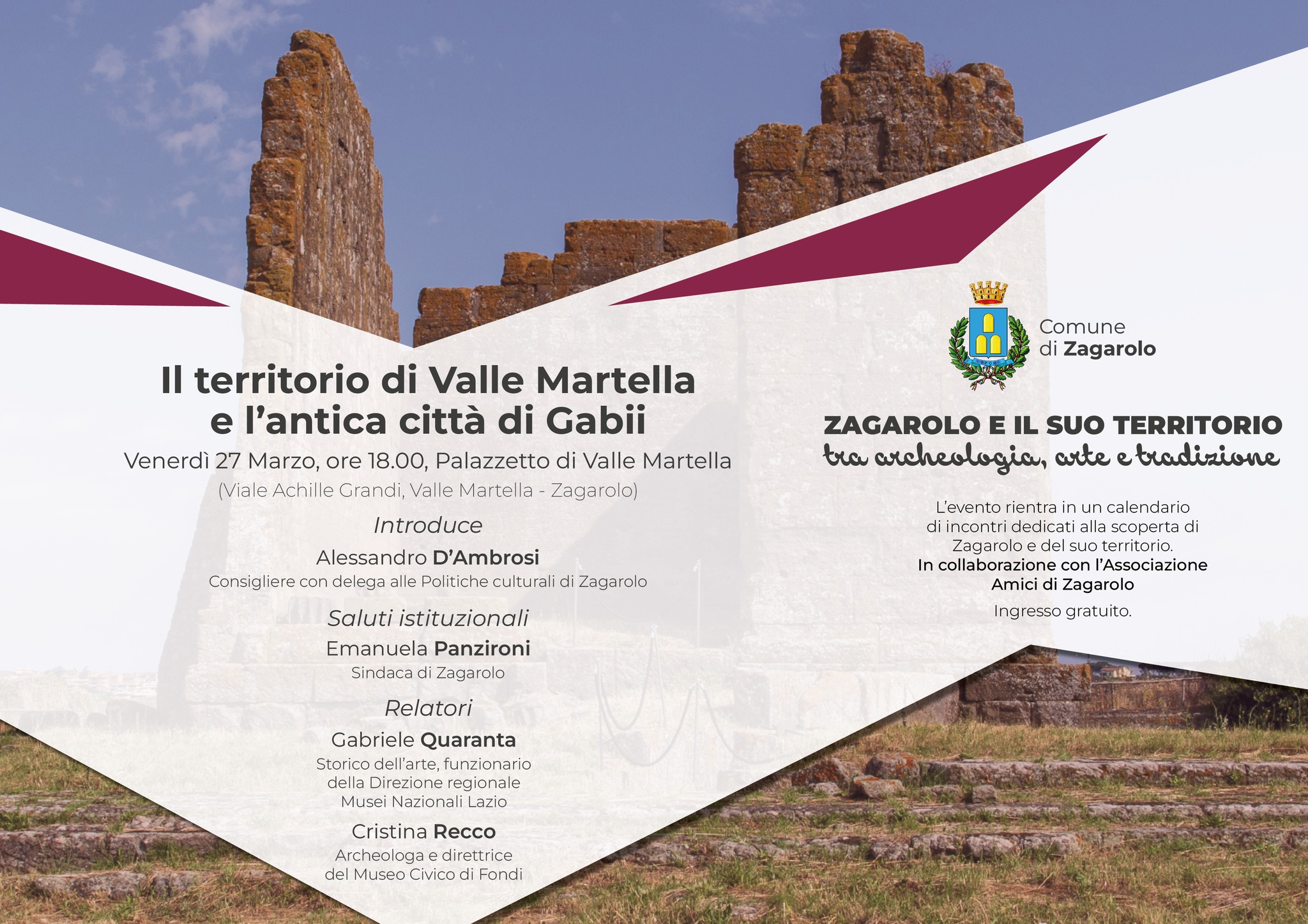 Un incontro pensato per approfondire storia, paesaggio e identità locale, offrendo una chiave di lettura più ampia del territorio di Zagarolo e delle sue connessioni con il mondo antico.