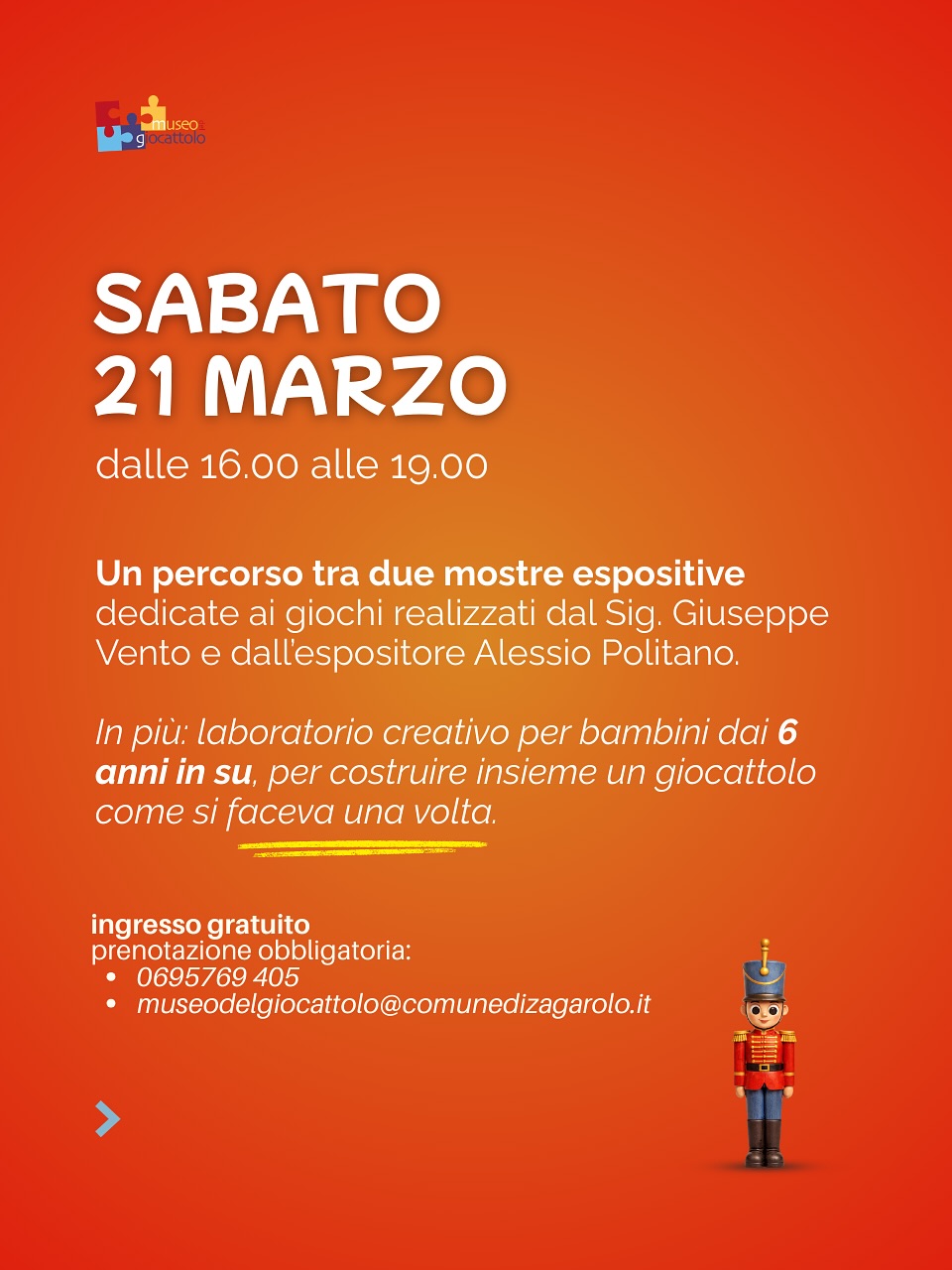Un weekend per tornare bambini, riscoprire i giochi di una volta e vivere il Museo del Giocattolo di Zagarolo in modo nuovo, tra laboratori, attività e momenti di condivisione per tutta la famiglia.